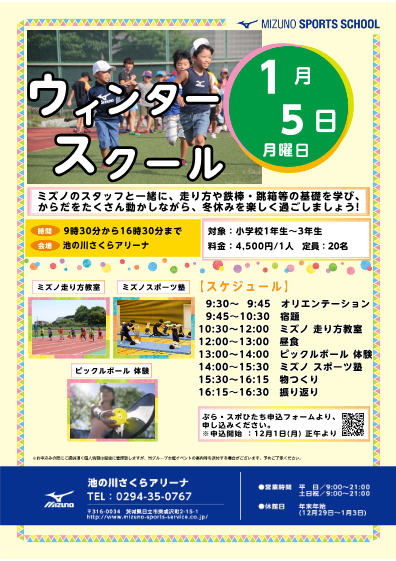 1月5日(月)『ミズノ ウィンタースクール』参加者募集中!
